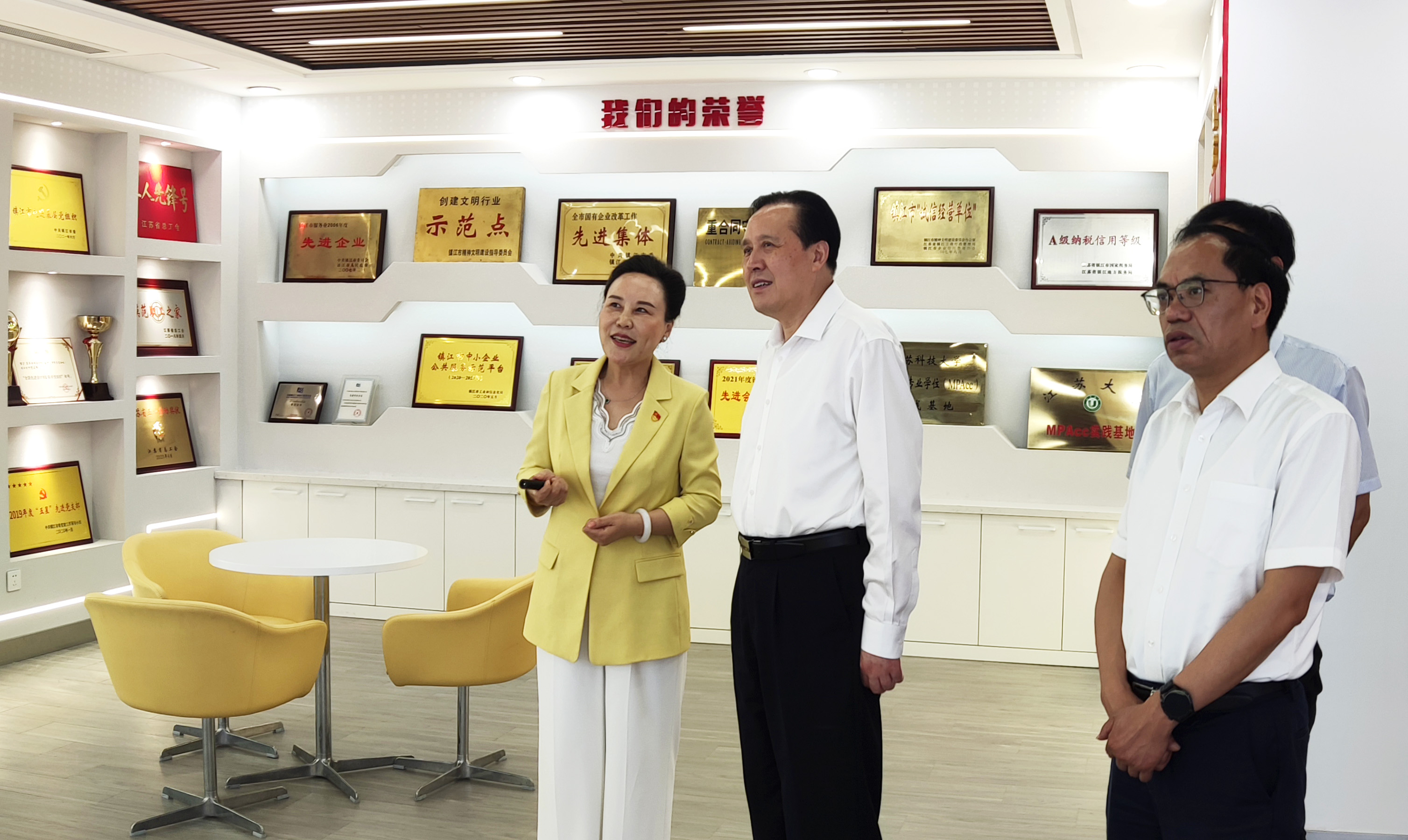 为了进一步加强与市人大代表的联系,广泛听取代表意见和建议,2022年7月7日,镇江市人大常委会主任李健莅临集团走访调研。在镇江市人大代表、集团党委书记、理事长范明华的陪同下,李健主任一行参观了集团党群服务中心。范明华同志简要介绍了集团在党建引领下的发展过程,党群工作开展情况以及范明华劳模支部创新工作室率先垂范、攻坚克难的成果以及集团的文化建设。