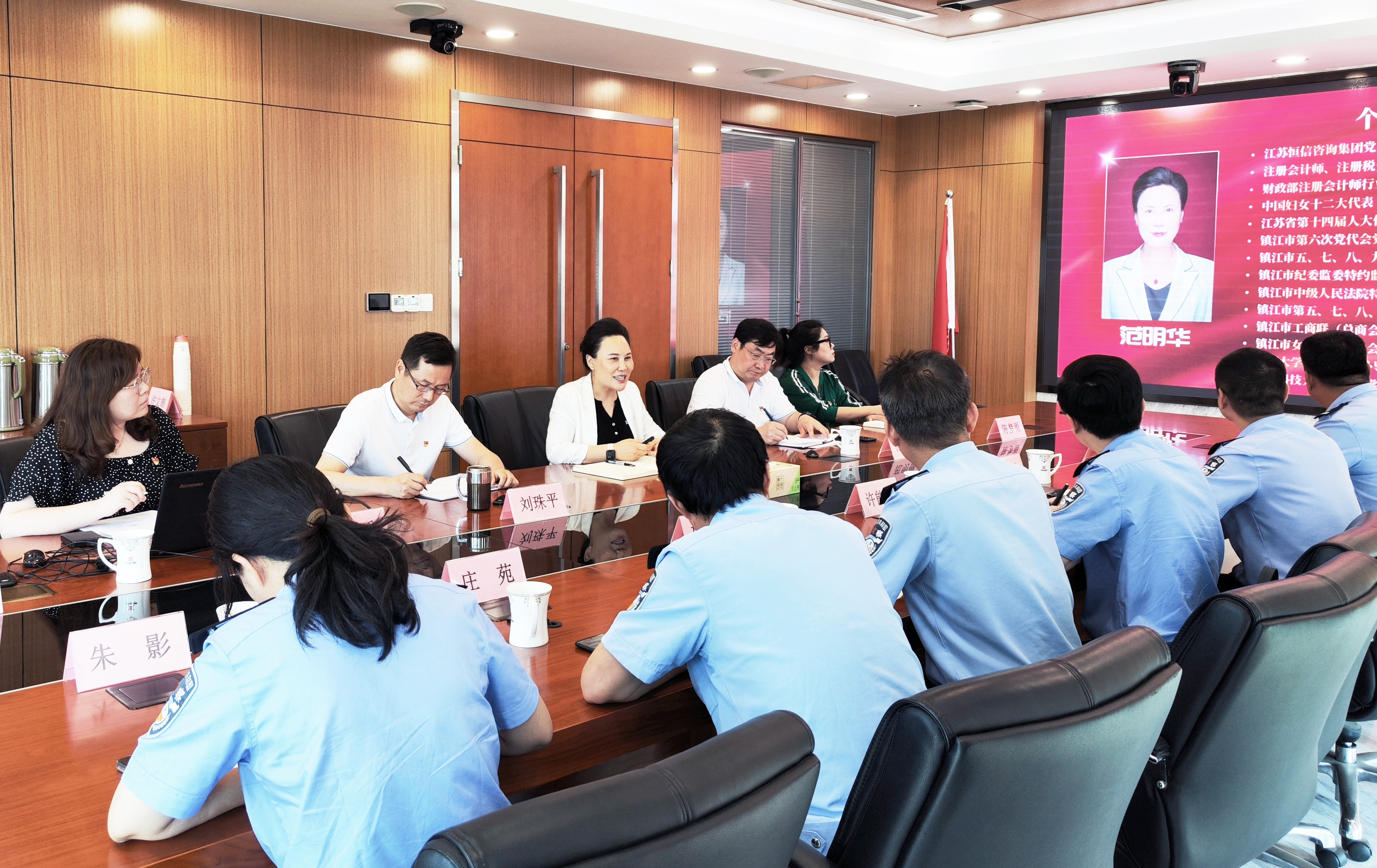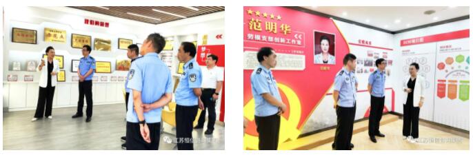在江苏恒信集团党委书记、理事长范明华的带领下,镇江市公安局审计处处长许能文一行先后参观了集团党群服务中心、范明华劳模创新工作室等区域。范书记简要介绍了集团的发展沿革、业务开展、人才培养及文化建设等情况。