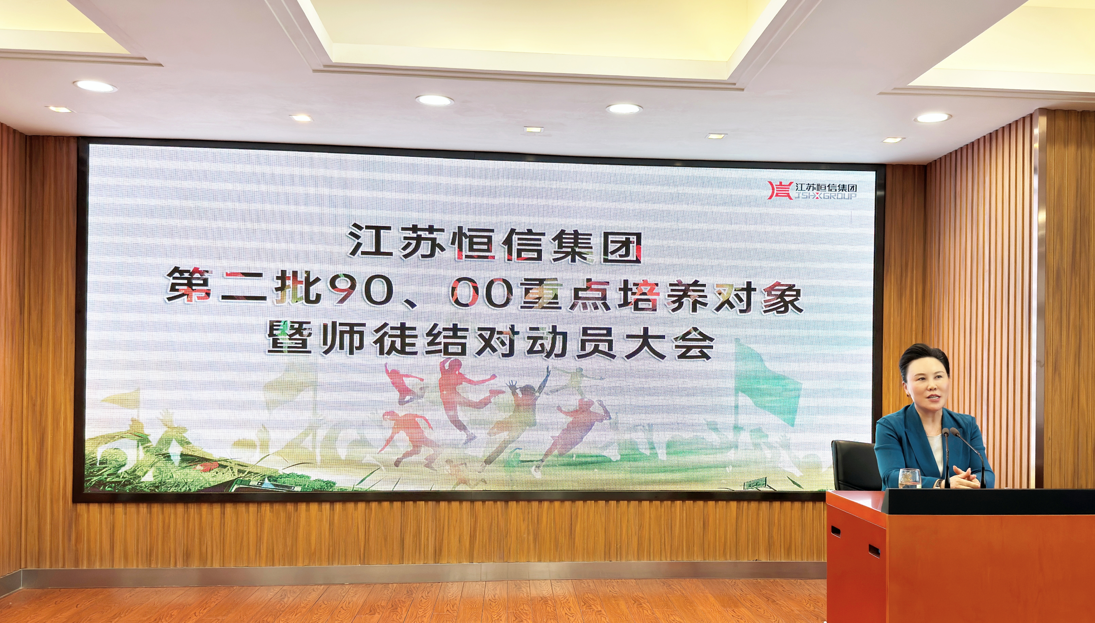 2023年11月1日,江苏恒信集团召开第二批90、00重点培养对象暨师徒结对动员大会。集团党委书记、理事长范明华出席会议并讲话。
