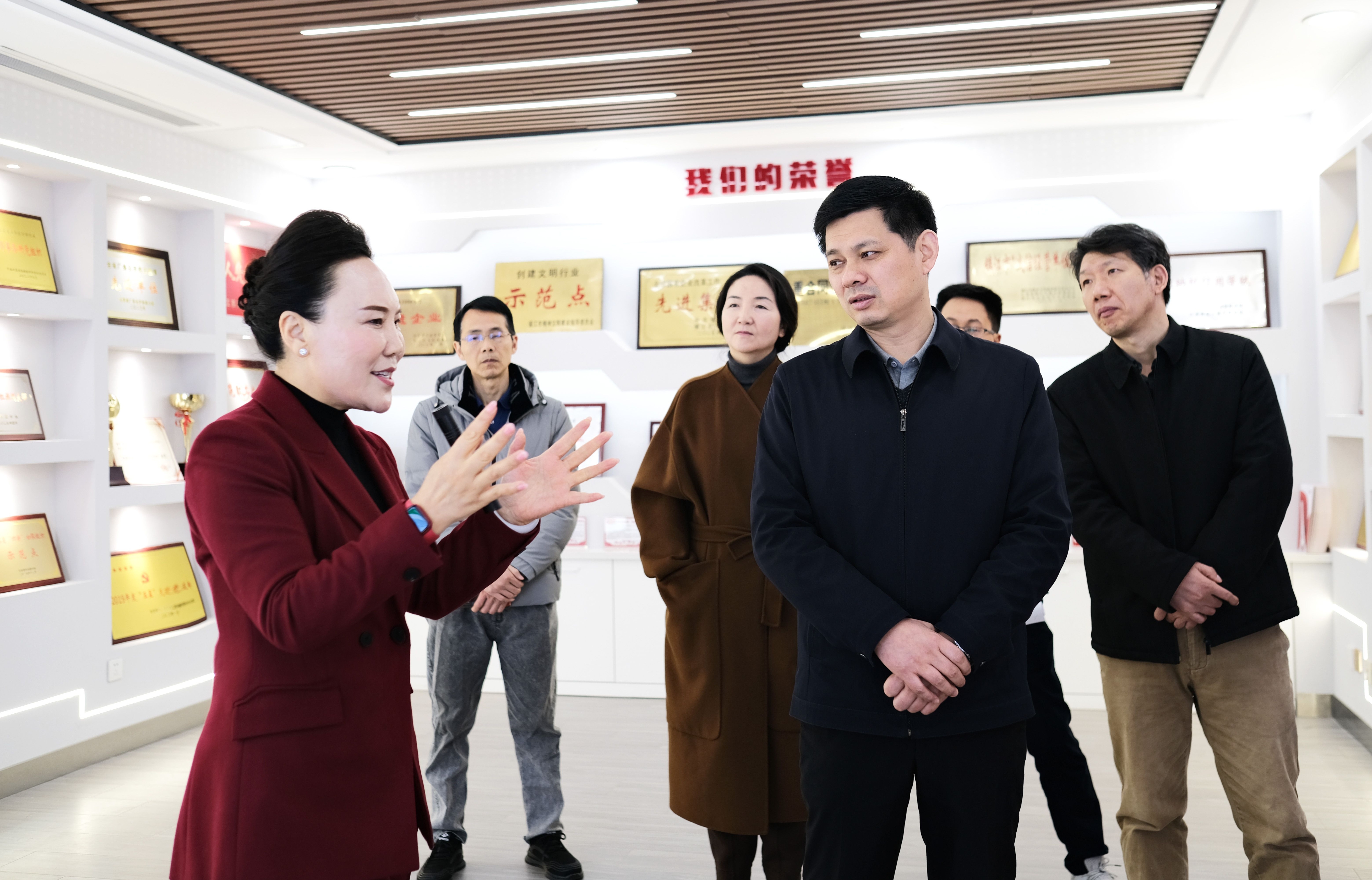 胡部长一行先后参观了集团党群阵地、范明华劳模创新工作室、新联之家等区域,聆听了集团的发展沿革、党建做法、统战工作、人才培养及文化建设等情况,对集团在充分发挥党建引领优势、助推青年员工成长成才、攻坚克难推进转型升级等方面的积极做法表示肯定和赞扬。