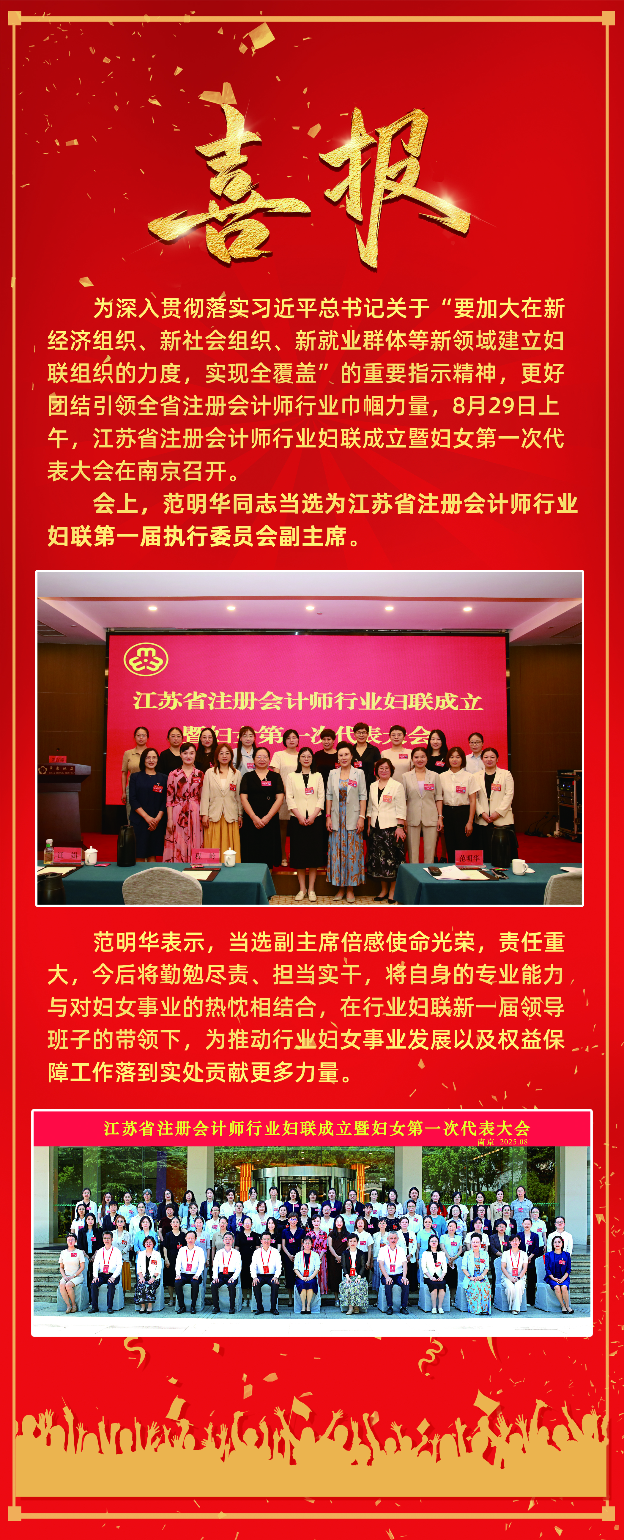 范明华同志当选为江苏省注册会计师行业妇联副主席