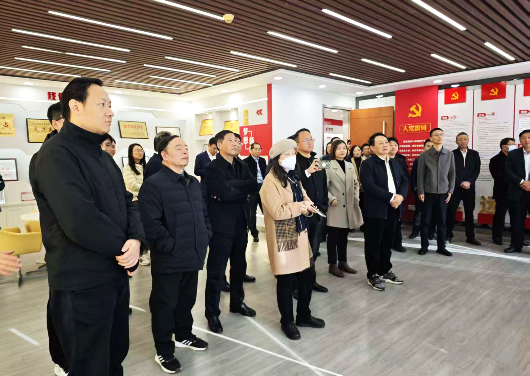 首先,在苏亚金诚会计师事务所(特殊普通合伙)镇江分所所长范明华的带领下,参会人员集中参观了事务所党建阵地,通过实地观摩与现场讲解,大家了解了事务所的发展沿革、党群建设、人才培养、文化建设等方面的工作成果。