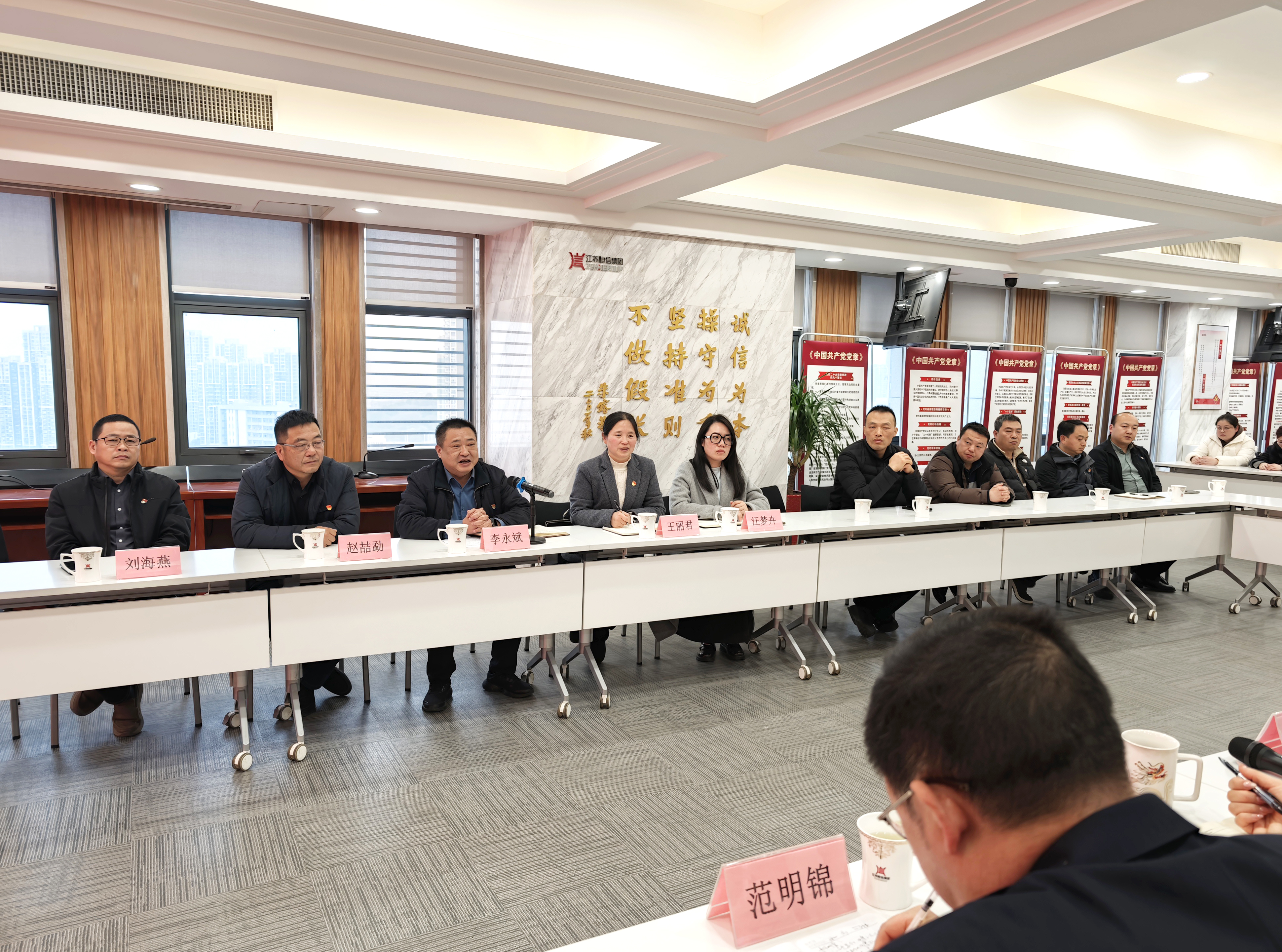 在交流座谈中,范理事长围绕“七彩党建”品牌从思想建设、党群共建、队伍建设、慈善公益等方面详细介绍了党建工作的开展情况以及集团聚焦主责主业、严守质量底线、关爱员工成长等方面的实践举措。