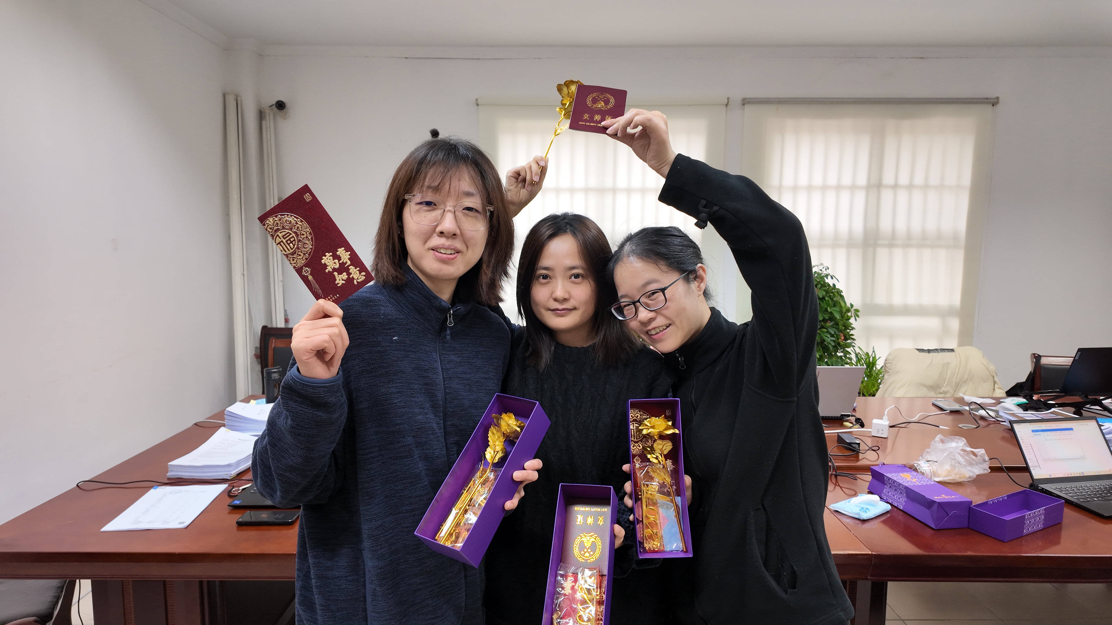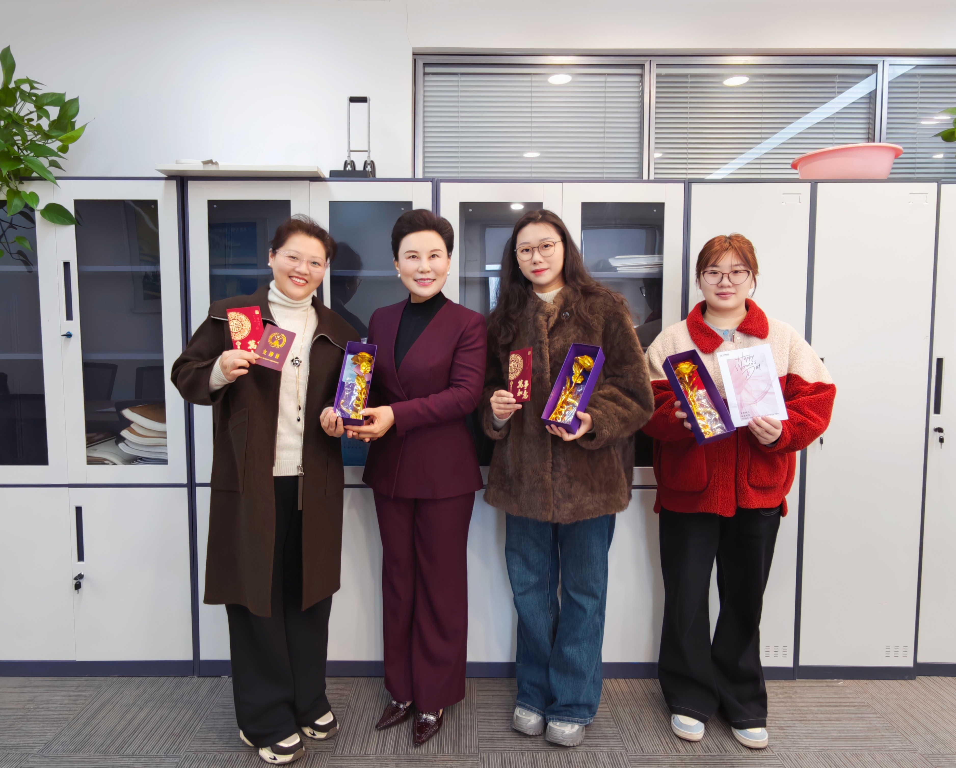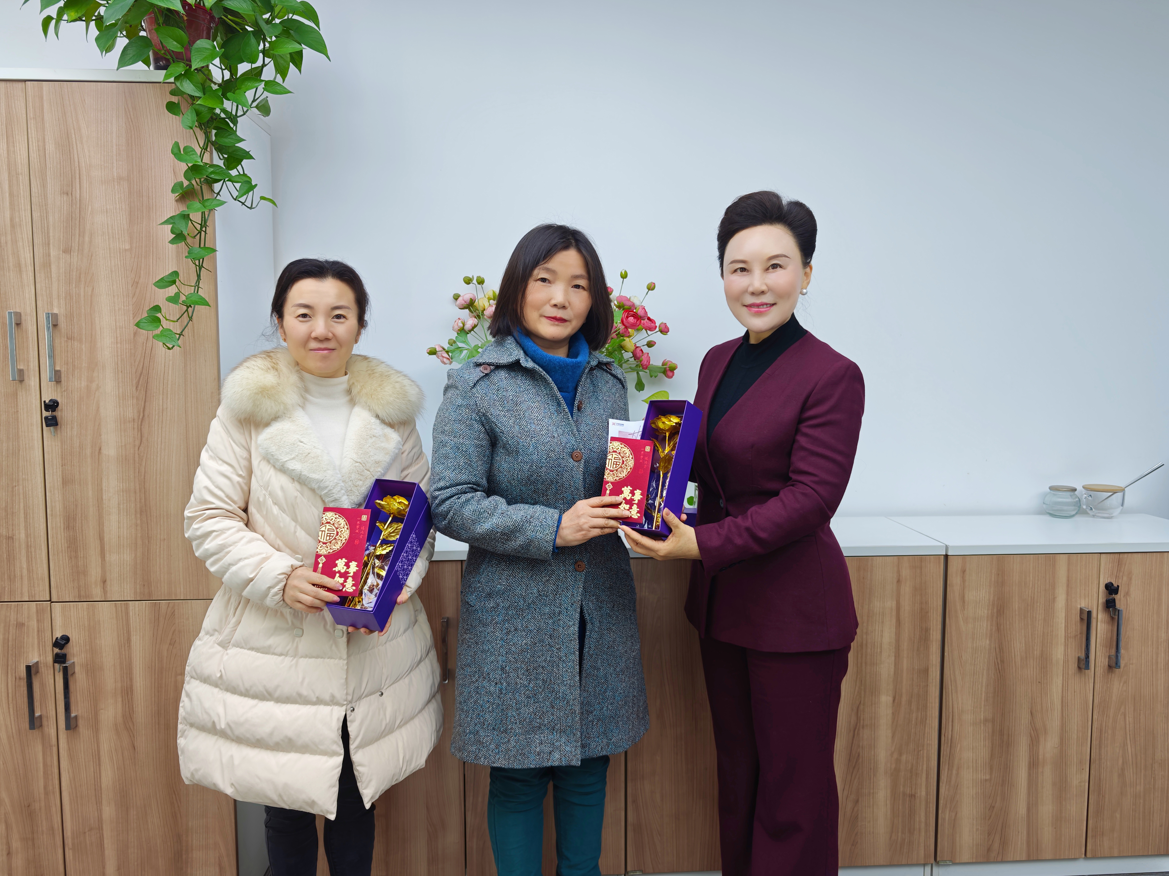 节日前夕,集团理事长范明华走进业务一线,为女职工们送上节日祝福和红包,一句句“节日快乐”“辛苦了”,不仅是对大家辛勤付出的肯定,更传递着集团对女职工的深切关怀。同时,集团妇联前往项目现场,将满载心意的节日礼物送到姐妹们手中。一句句暖心问候,一个个温暖瞬间,让 “娘家人” 的关怀直抵人心。