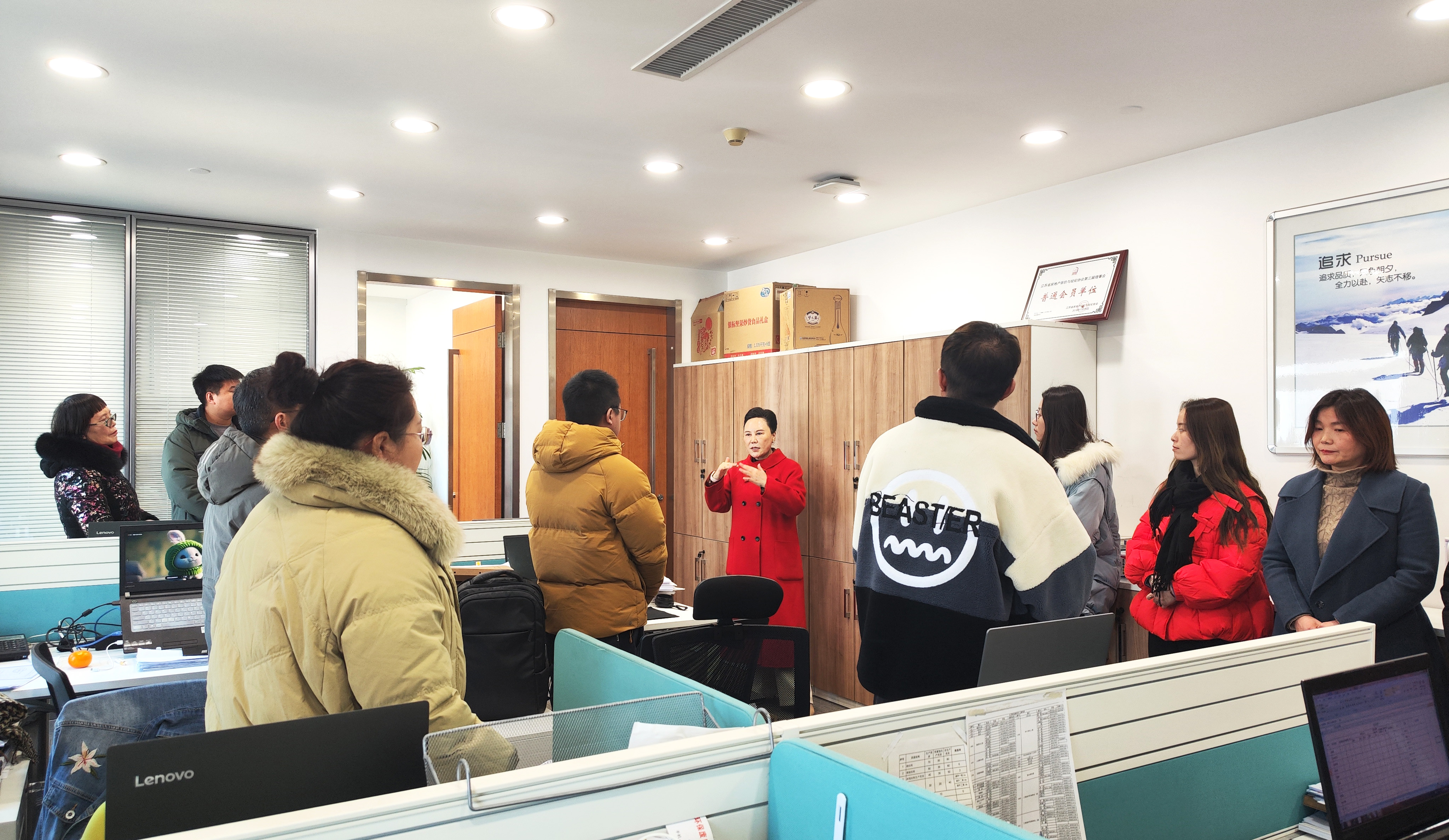“新年好!给大家拜年了!”伴随着阵阵欢声笑语,范理事长亲切地和每位员工拜年,同大家互致问候,对大家在过去一年的不懈努力、辛勤付出表示感谢,并鼓励大家在新的一年凝心聚力、开拓创新、再创佳绩。团拜现场气氛热烈、其乐融融。