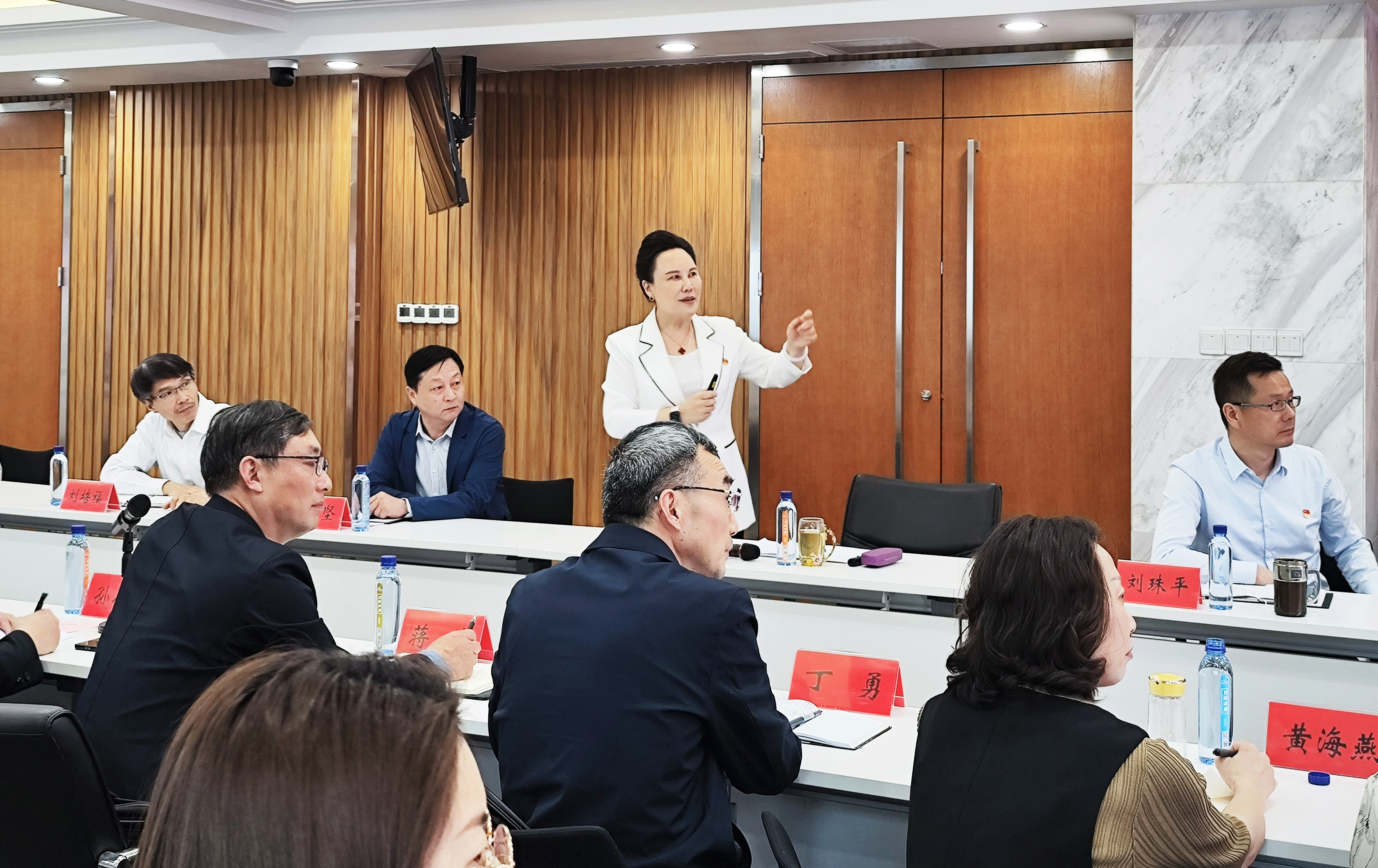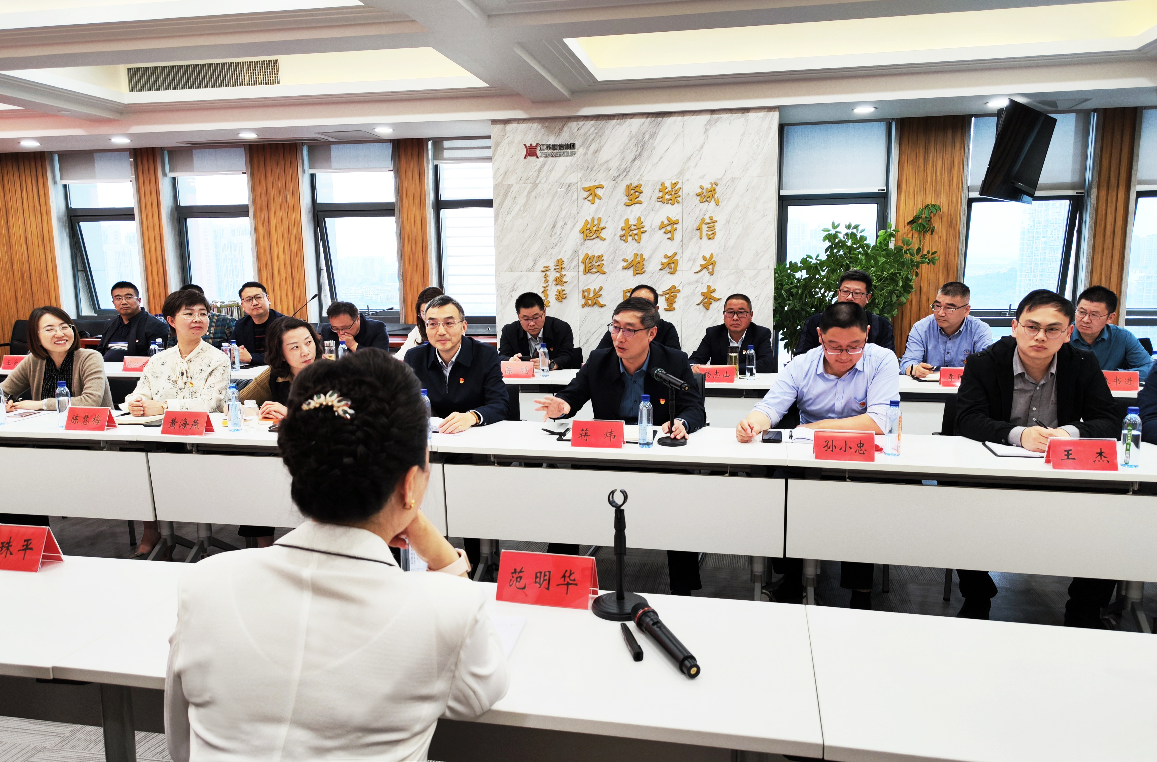 在随后交流座谈会上,范理事长以《不忘初心、继续前进》为题分享集团党建工作的经验和成果,详细介绍了集团党群品牌、创新业务开展、诚信建设、人才培养、文化建设和慈善公益举措。
