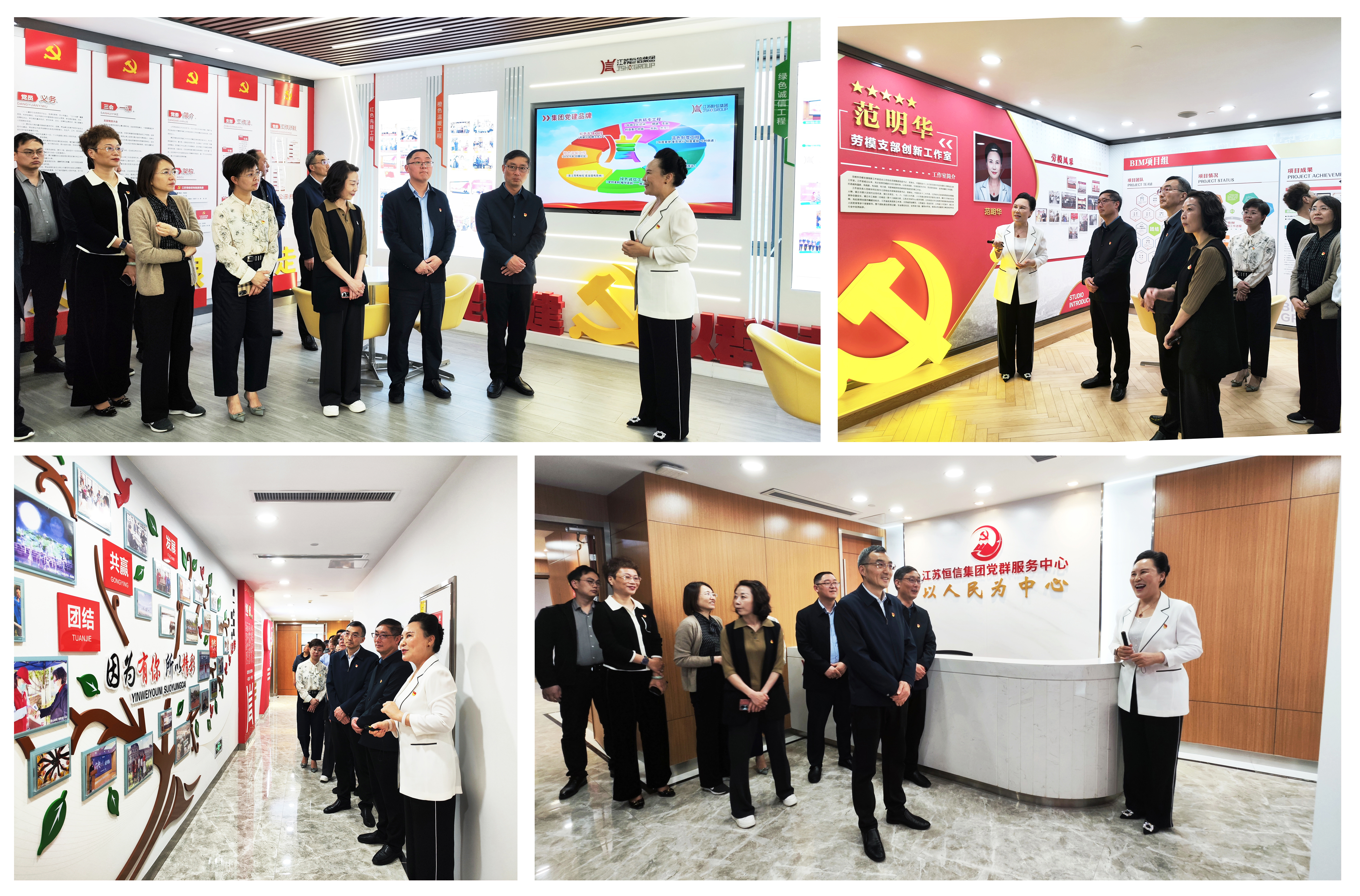 范理事长带领大家参观了集团党群服务中心、范明华劳模支部创新工作室等区域,简要介绍了集团在党建引领下的发展历程,党建工作开展情况以及集团的文化建设。
