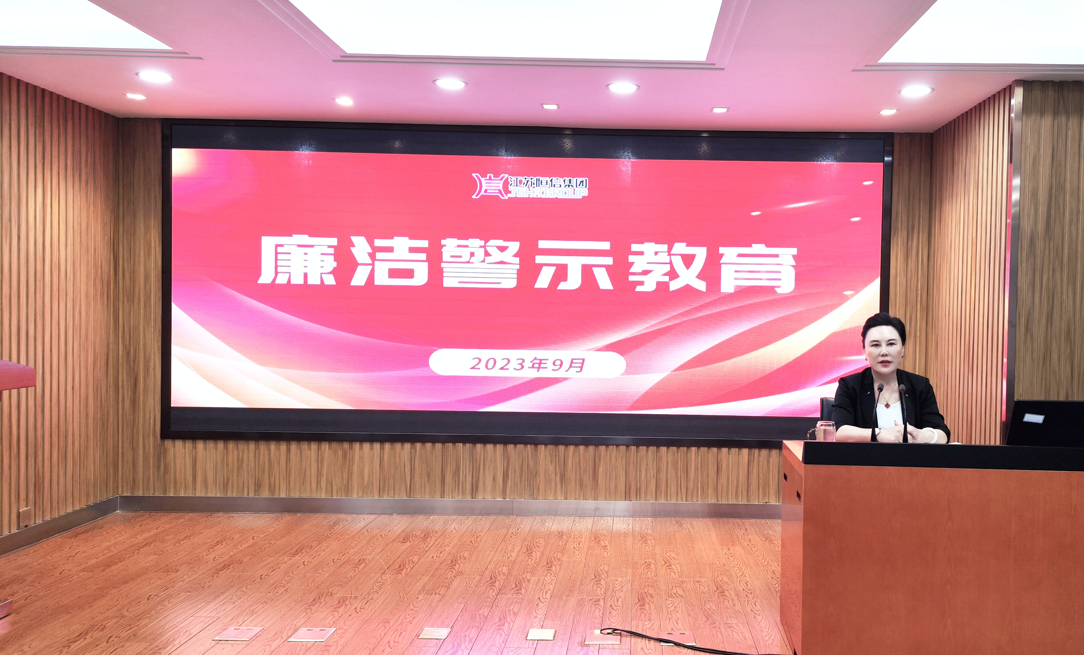 2023年9月13日上午,江苏恒信集团组织开展廉洁警示教育,全体员工参加会议,集团党委书记、理事长范明华主持会议并作讲话。