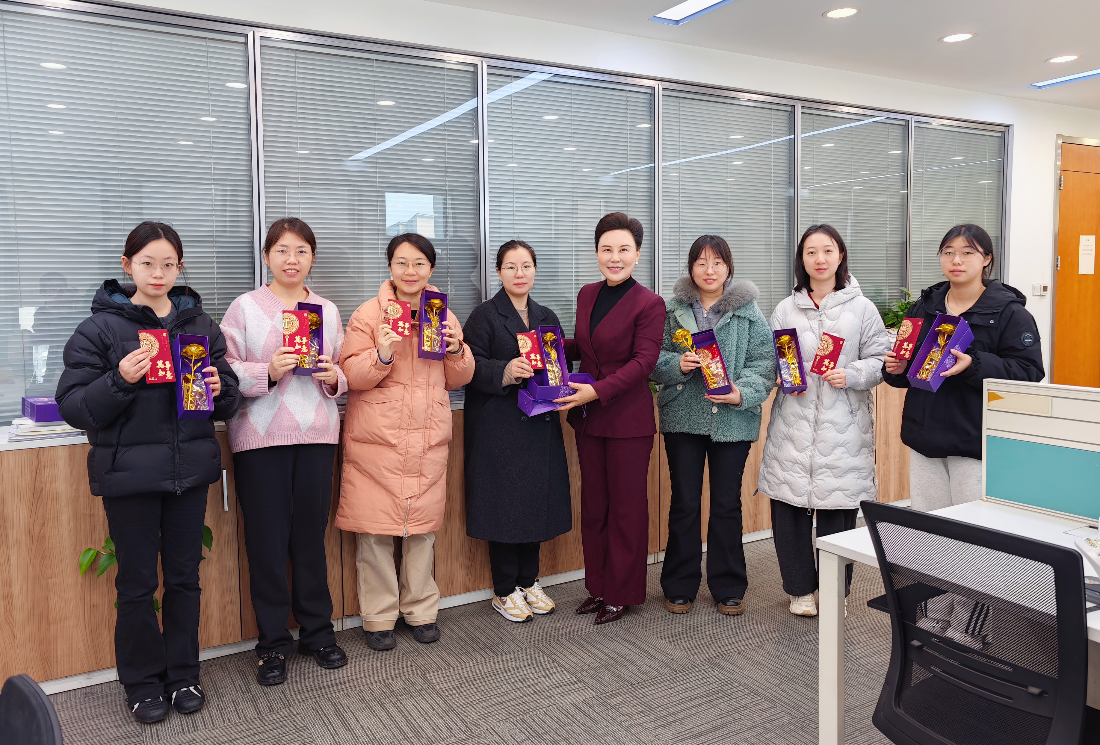 节日前夕,集团理事长范明华走进业务一线,为女职工们送上节日祝福和红包,一句句“节日快乐”“辛苦了”,不仅是对大家辛勤付出的肯定,更传递着集团对女职工的深切关怀。同时,集团妇联前往项目现场,将满载心意的节日礼物送到姐妹们手中。一句句暖心问候,一个个温暖瞬间,让 “娘家人” 的关怀直抵人心。
